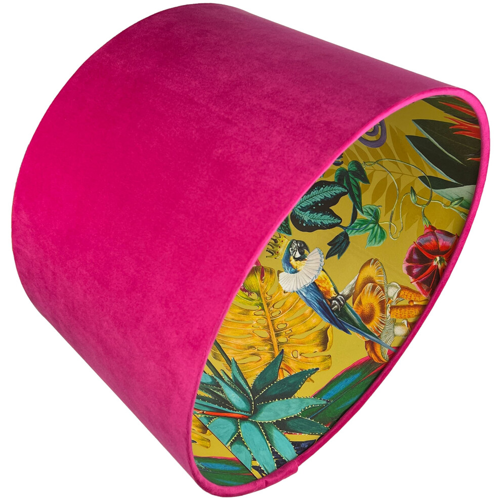 Hot Pink Velvet Tropical Jungle Animal Lampshade Ceiling Light Shade Parrot Bird Theme Green Leaf Print Table Lamp Bedroom Home Decor
