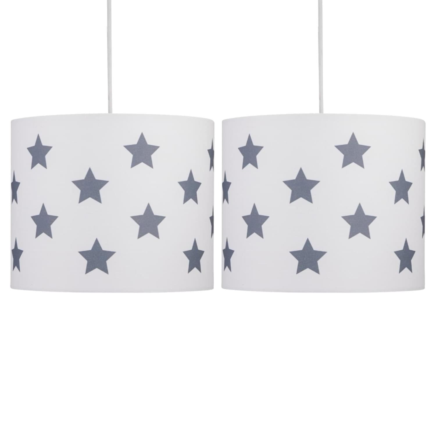 Set of 2 Modern Grey Stars Children's Boys Bedroom Ceiling Light Shade Pendants
