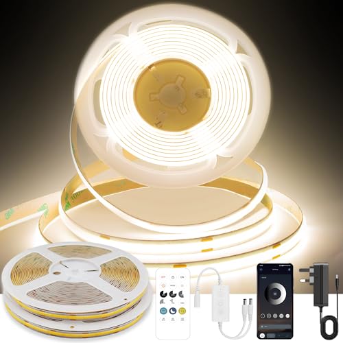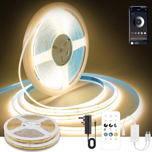 FUIQI Dotless COB LED Strip 20M,24V Dimmable Flexible LED Light Strip with App & Remote,Warm White 2700K,CRI>90,8mm Cuttable Self-Adhesive COB Tape for Kitchen,Bedroom,Mirrors Decoration
