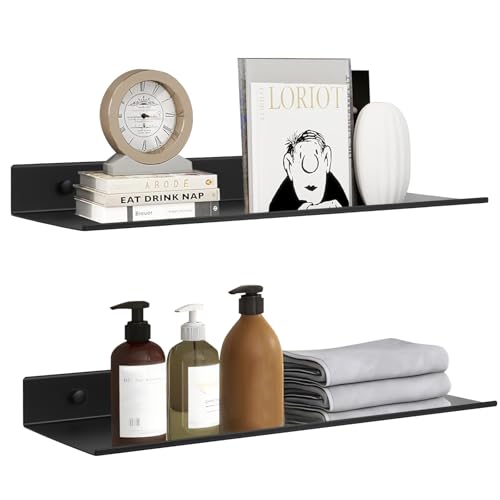 MILUKA Set 2 Floating Shelves Black | Metal for Wall Shelf Picture Ledge, Photo Shelf, Bedroom Shelves, Kitchen Storage in Home Decor (2, Black), 50 x 15 x 3 cm (5015 N2)