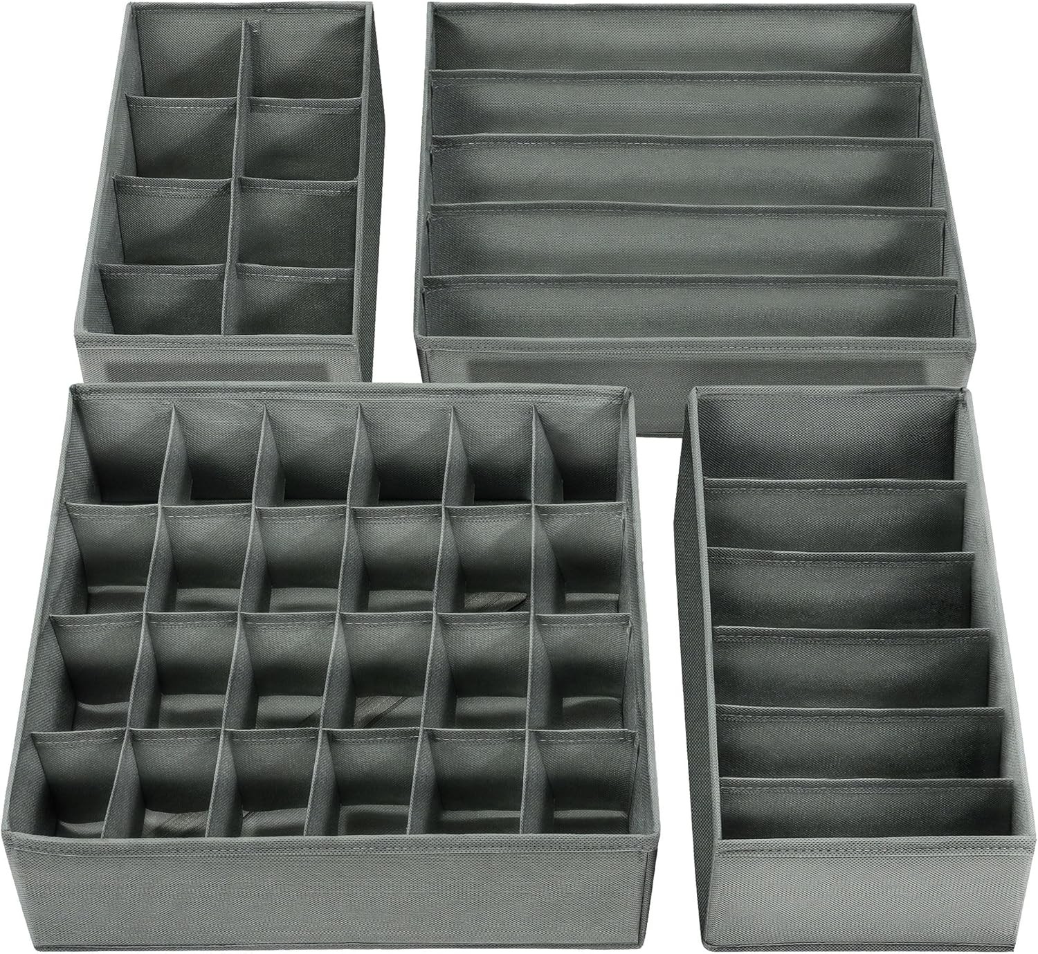 SabMak Underwear Drawer Organiser Divider – Bedroom Storage Boxes for Bras, Underwear, Socks, Ties, Baby Cloths, Wardrobe Clothes Organiser 4-Pieces Grey (Set of 4)