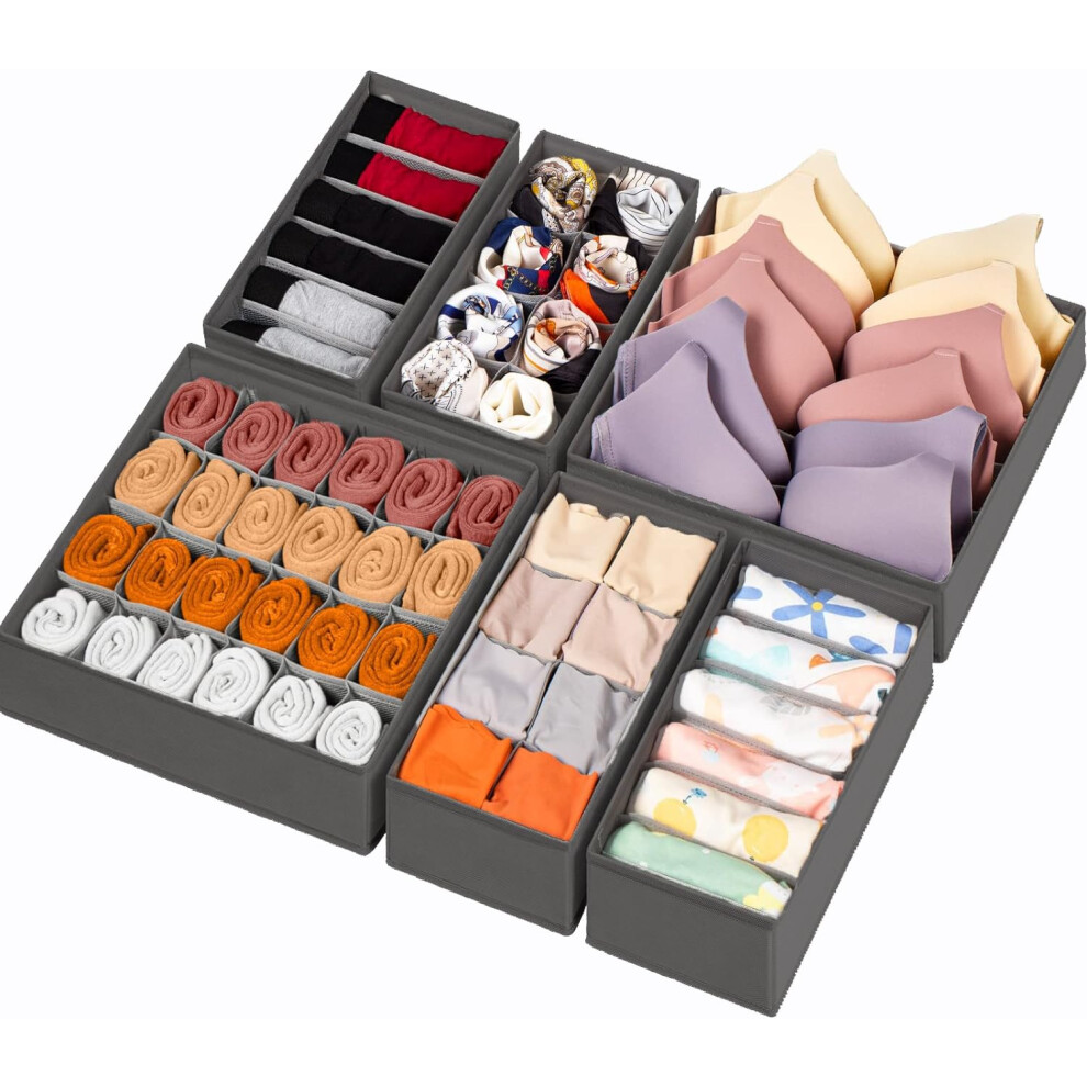SabMak Underwear Drawer Organiser Divider – Bedroom Storage Boxes for Bras, Underwear, Socks, Ties, Baby Cloths, Wardrobe Clothes Organiser 4-Pieces Grey (Set of 4) (set of 6)
