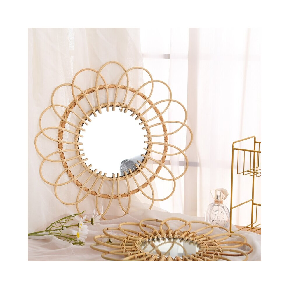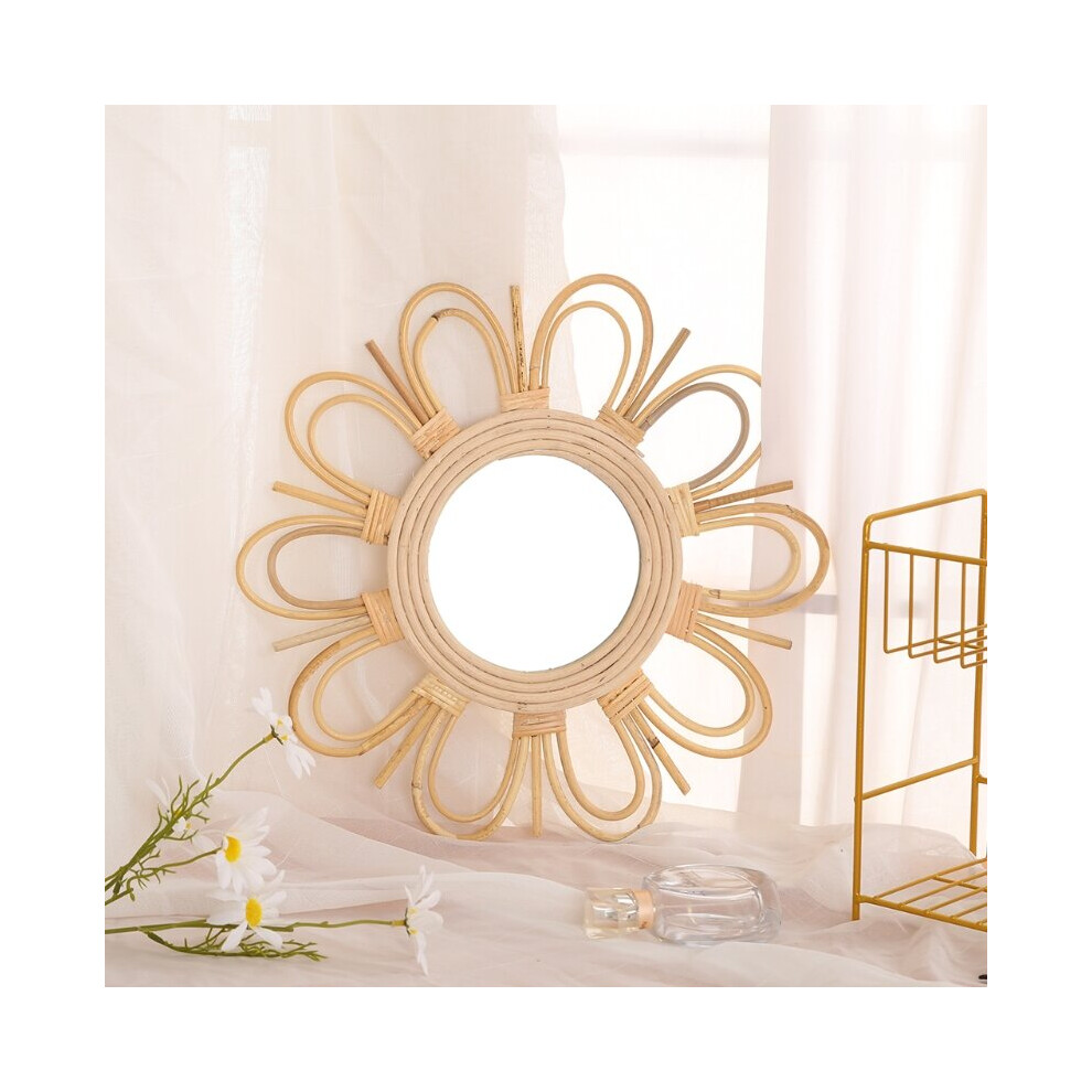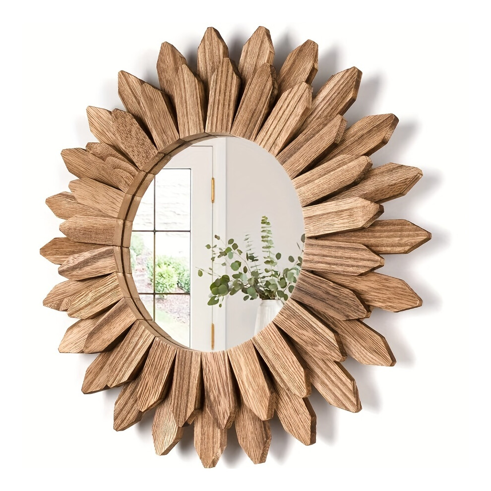 1pc 12 Inch Boho Sun Flower Shape Vintage Wooden Decorative Entrance Bedroom Living Room Wall Mirror