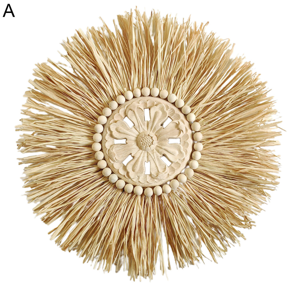 Hanging Mirror Raffia Moroccan Wood Beads Acrylic Multifunctional Decorative Decorations Bedroom Decorative Wall Mirror
