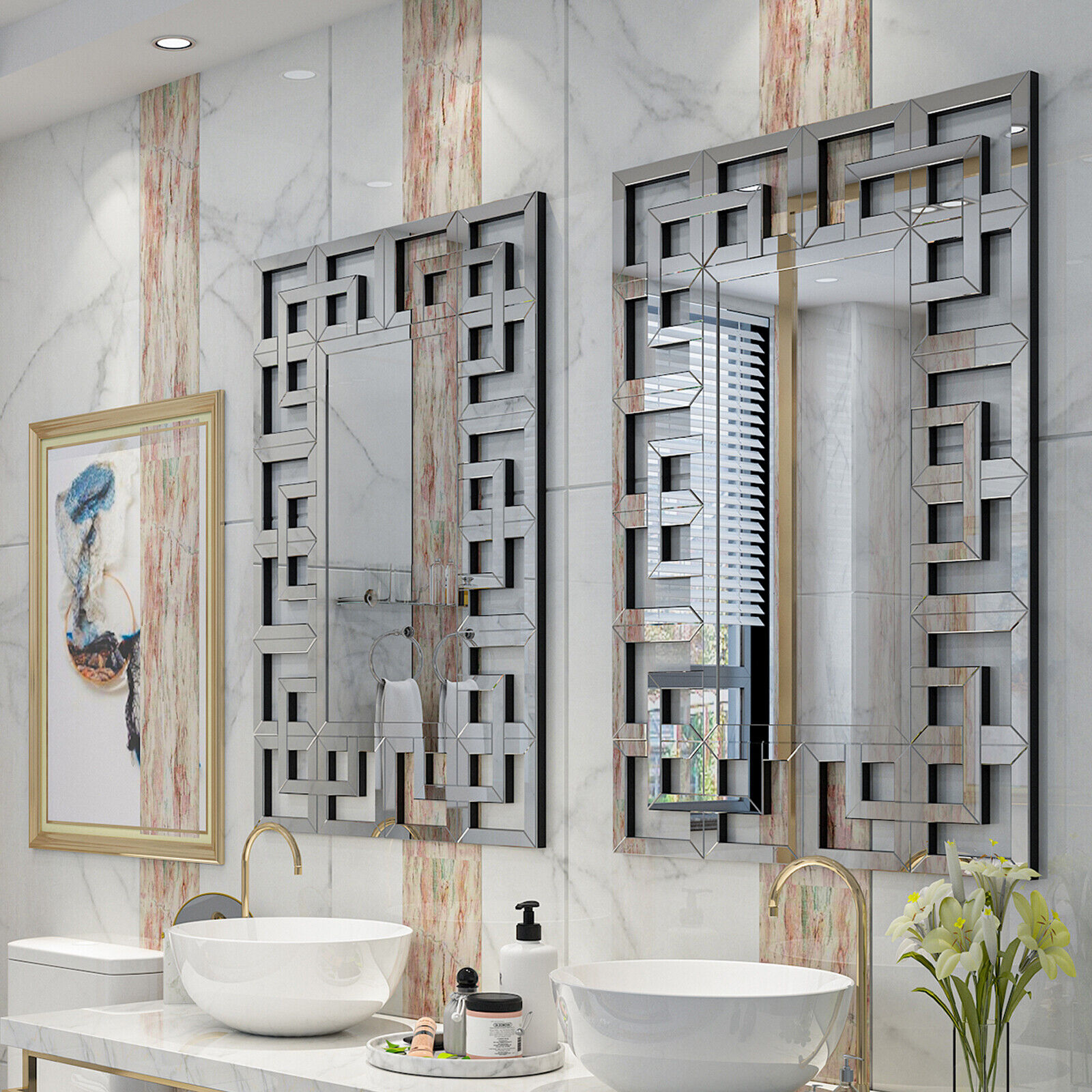 100 x 70cm Rectangular Silver Art Mirror Living Room Hallway Bedroom Wall Mirror