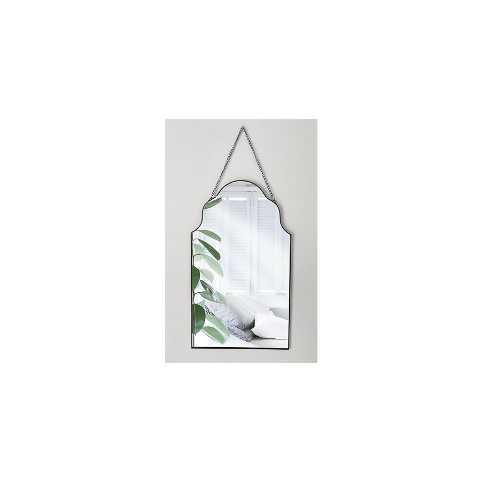 Decorative wall mirror, Metal Frame Wall Mounted Mirror With Chain for Home Decor, Bedroom Wall Mirror In Black Rim with