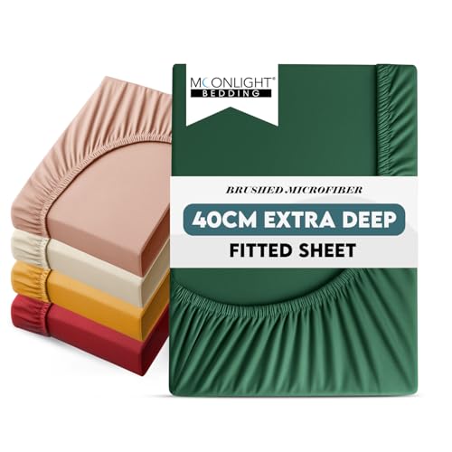 Moonlight Bedding Fitted Sheet King Size Bed Sheets 40 CM (16 Inch) Extra Deep Pocket Emerald Bedsheets with Elastic Corners, Soft Brushed Microfiber Fabric, Breathable, Shrinkage & Fade-Resistant