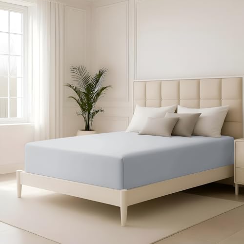 Hafaa King Size Fitted Sheet 40 Cm Extra Deep Pocket Silver King Bed Sheets Soft Brushed Microfiber Fabric Elastic Corners Breathable Shrinkage Fade-Resistant Bedsheets