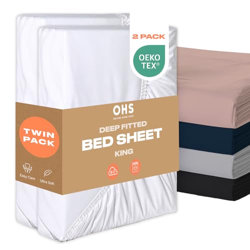 Brentfords Bedsheets for King Size Bed 2 Pack, Microfibre Bedsheet Easy Care Ultra Soft Fade Resistant Kingsize Fitted Sheet Bedding Cover Bed Linen Sheets, White