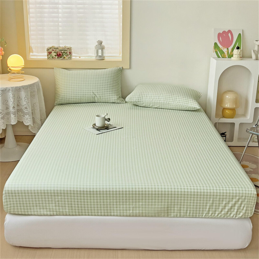 Fitted Sheets Microfibre Double Size 27cm Deep Pocket Plaid Pattern Light Green Bedsheets King