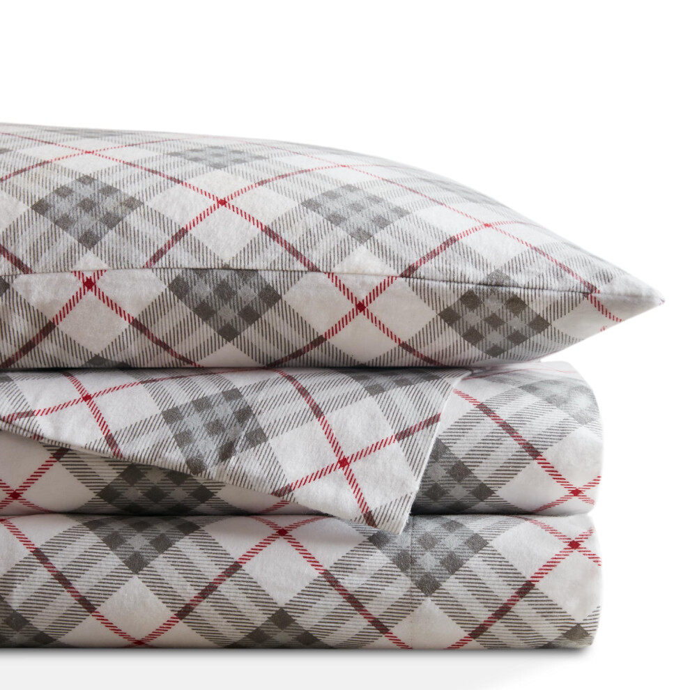 Codi Flannel Sheets King Size- 4 Pieces Ultra Soft Warm Sheet Set Cozy 100% Cotton Red Plaid Bedsheets Brushed for Extra Softness Fall Themed 14 I