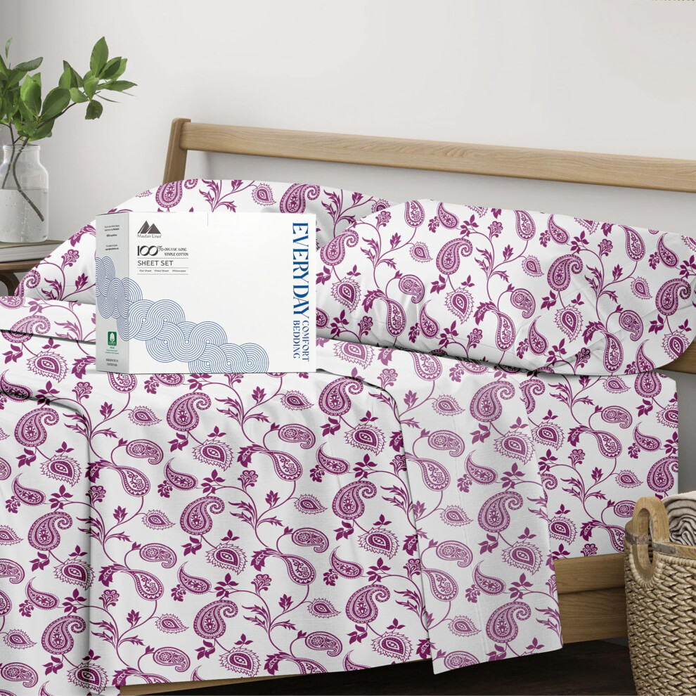 Mayfair Linen 100% Organic Cotton Printed Sheets King Size - 4 PC Organic Cotton Percale Sheets King Set (Paisley) Cooling & Breathable Bedsheets 1