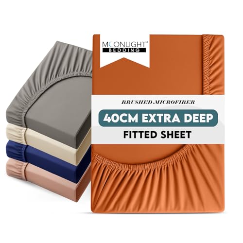 Moonlight Bedding Fitted Sheet King Size Bed Sheets 40 CM (16 Inch) Extra Deep Pocket Rust Bedsheets with Elastic Corners, Soft Brushed Microfiber Fabric, Breathable, Shrinkage & Fade-Resistant