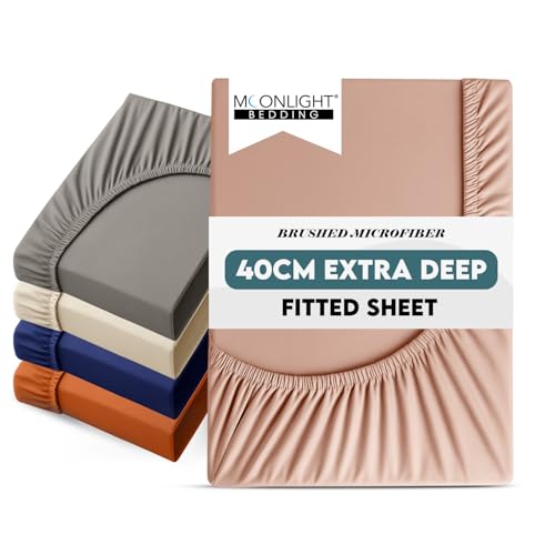 Moonlight Bedding Fitted Sheet King Size Bed Sheets 40 CM (16 Inch) Extra Deep Pocket Peach Bedsheets with Elastic Corners, Soft Brushed Microfiber Fabric, Breathable, Shrinkage & Fade-Resistant