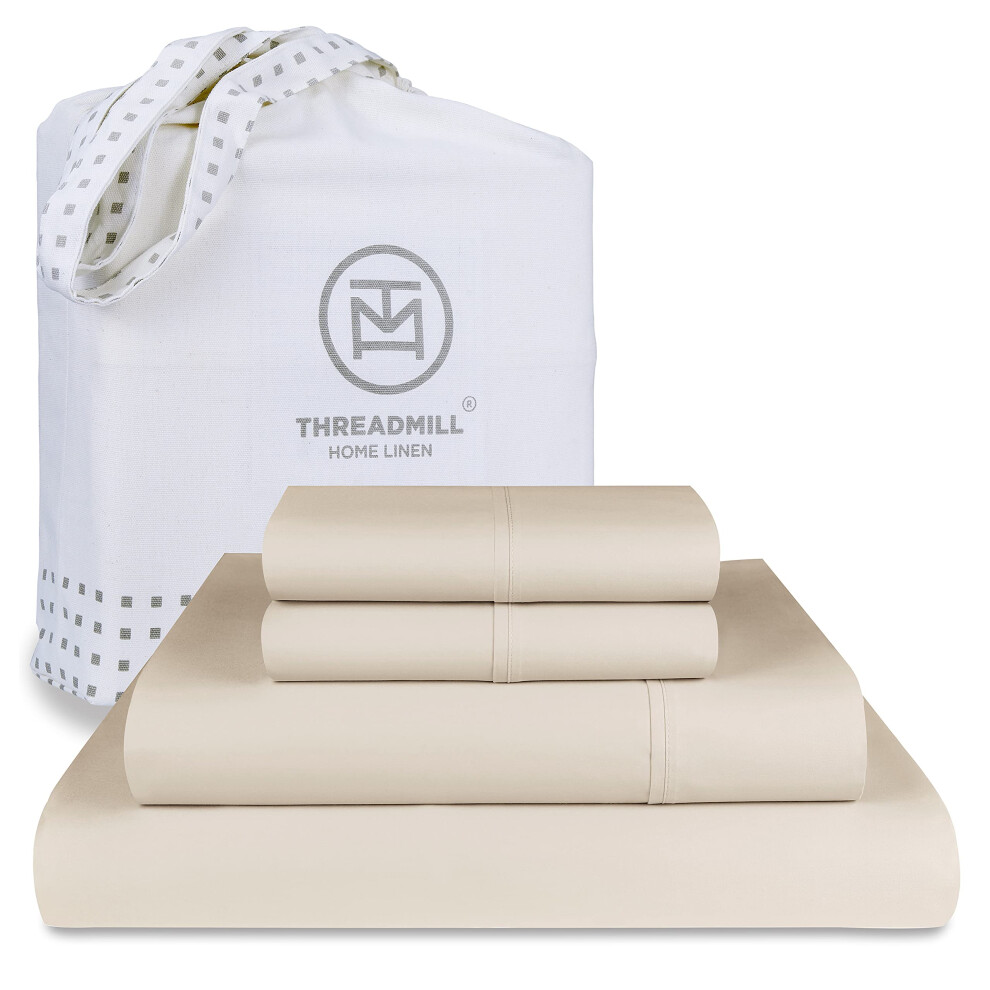 Threadmill - Hotel Luxury Sheets King Size 100% Cotton 500 Thread Count Deep Pocket Snug Fit Soft & Crisp Cooling Hotel-Quality Bedsheets 4 Piece S