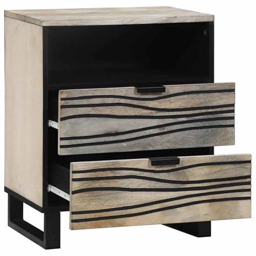 Homgoday Bedside Cabinet Grey 50 x 33 x 62 cm Solid Mango Wood Storage cabinets suitable for bedrooms and lounges ZSSWQ-UK4018781UK