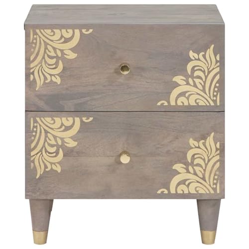 Mengtu Bedside Cabinet Grey 40 x 33 x 46 cm Solid Mango Wood Easy to install and space saving storage cabinets ZSSCB-UK4018770UK