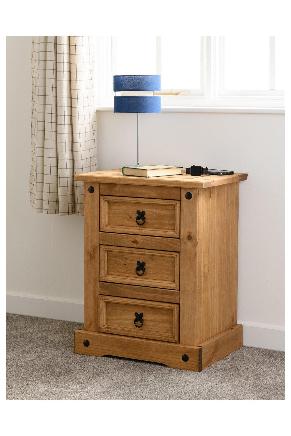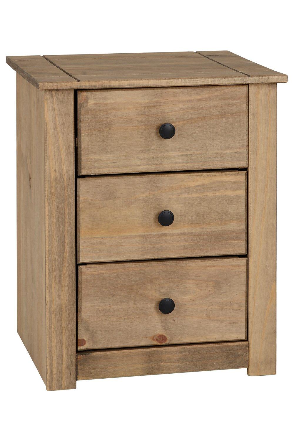 Loxley Vintage Solid Wood 3 Drawer Bedside Table Cabinet Black