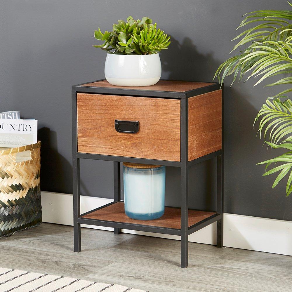 55cm W x 51cm D x 56cm H Industrial 1 Drawer Bedside Table Bedroom