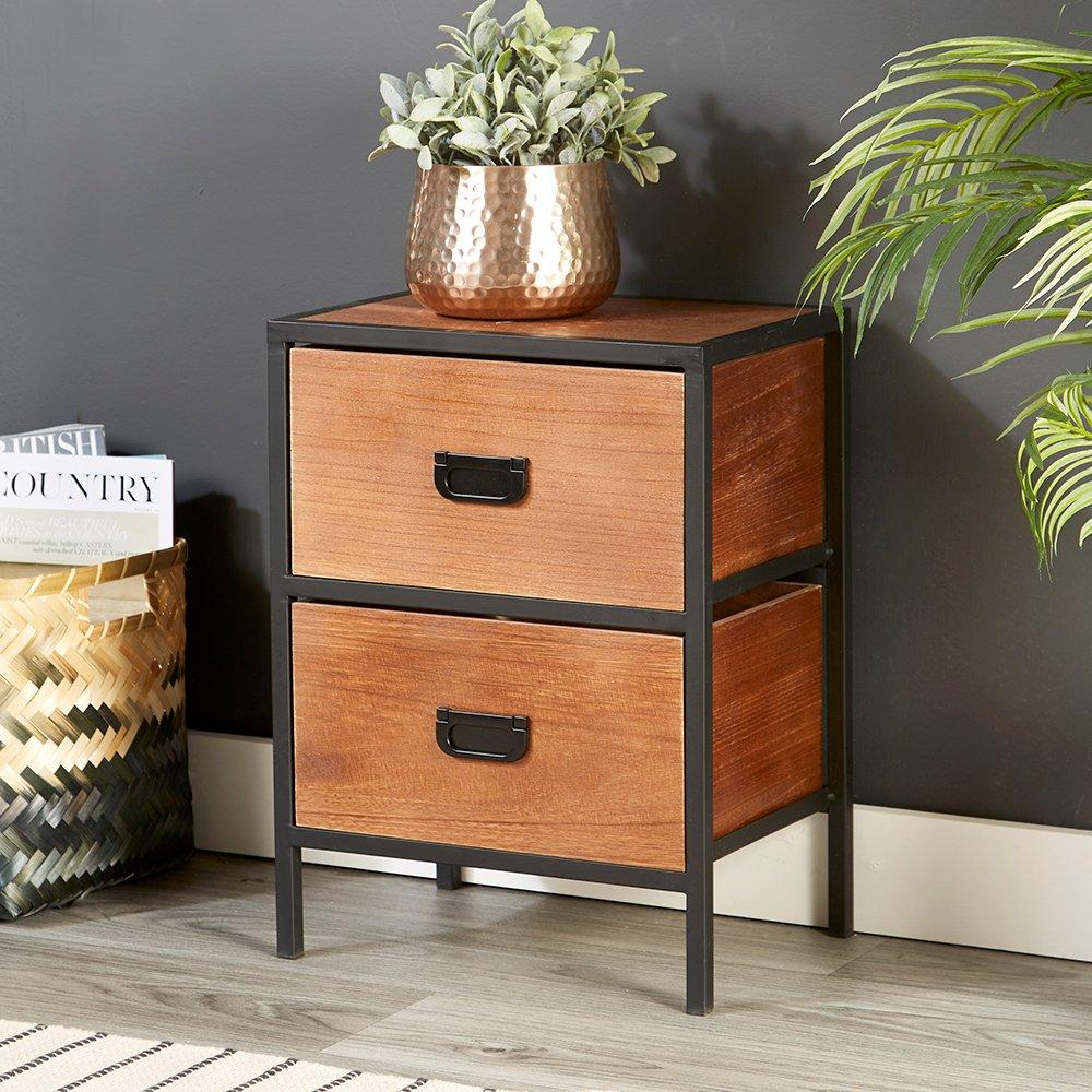 Acadia Modern Industrial 2 Drawer Bedside Table Unit
