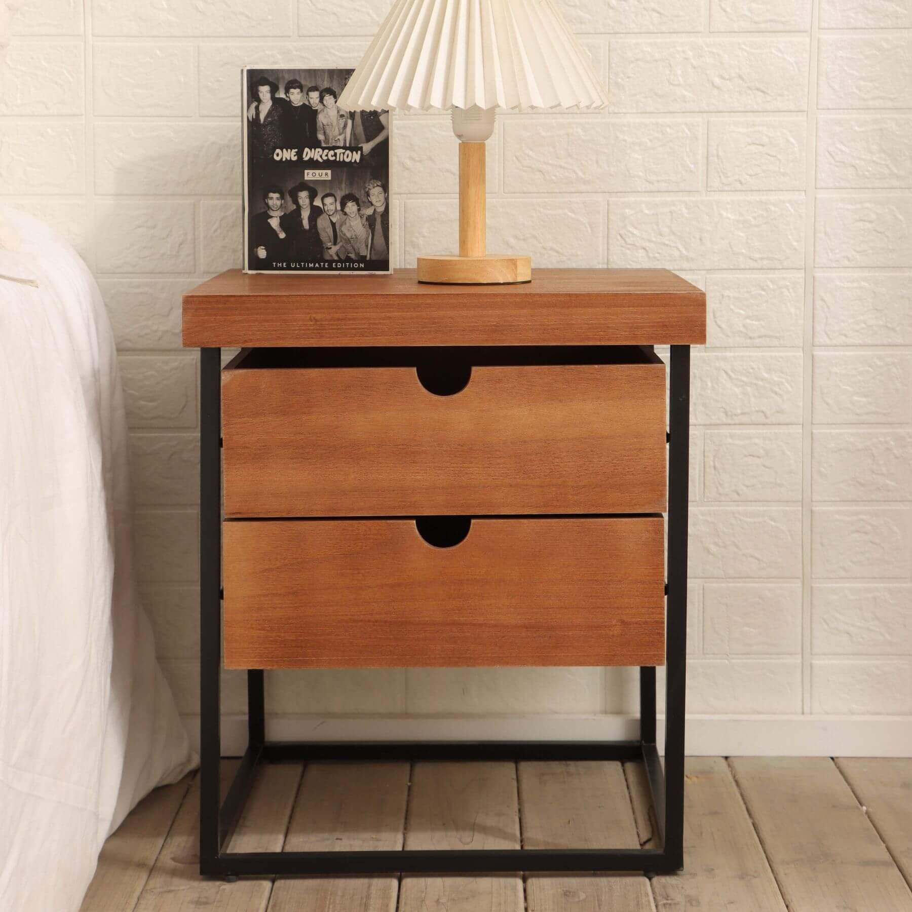 Vintage Industrial Bedside Table 2 Drawer Storage Cabinet Furniture Nightstand
