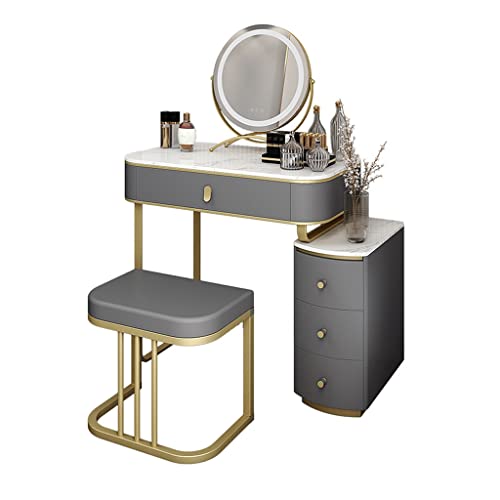 KOHUS Vanity Mirror With Lights And Table Set Vanity Table Set Slate Bedside Table Integrated Dressing Table Bedroom Modern Small Dressing Table Dresser with Drawers Teen Vanity With Mirror And Stool