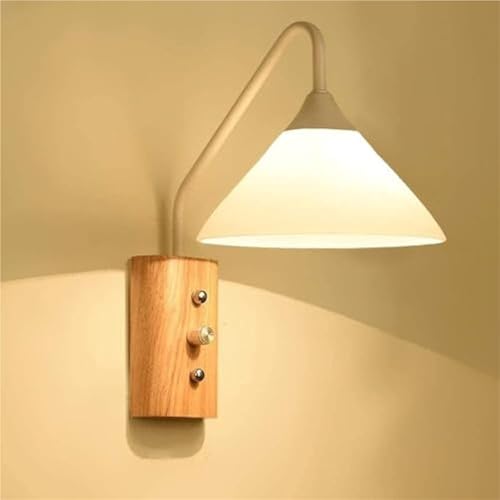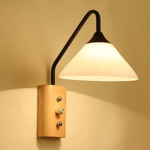 QYYZTQY E27 Wall Lights Wood Art Base Wall Lamp Glass Lamps Shades Wall Lighting Nordic Minimalist for Bedside Bedrooms Living Dining Room Home Decor Wall Lamp (Color : Black)