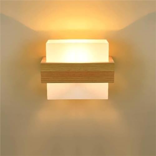 QYYZTQY Square Vintage LED Lamp Solid Wood Frame Retro Glass Shades Wall Lamp Bedroom Bedside Lamps Study Living Room Balcony Staircase Wooden Home Decor Wall Lamp