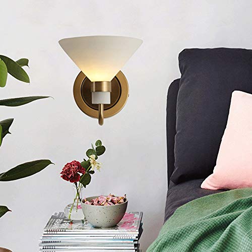 QYYZTQY American Retro Style All Copper Frosted Glass Shades Mounted Lamp for Living Room Bedroom Ideal Background and Bedside Lighting Wall Light with E26/ Base
