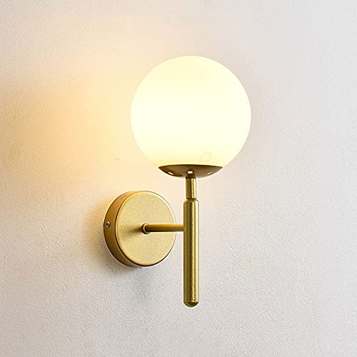 QYYZTQY White Glass Shades Lamp Bedroom Bedside Metal Lights, Wall Lighting Fitting Kits Indoor Sconces for Living Room Study Hallway, E27 Headboard Light (Color : Gold)
