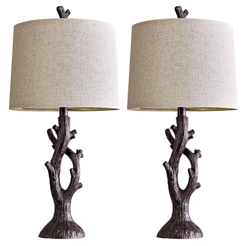 ZR98US 25-inch Farmhouse Vintage Table Lamp Set of 2 with Linen Shades Bedroom, and Bedside Tree Lights Suitable for Living Room, Dormitory, Office,