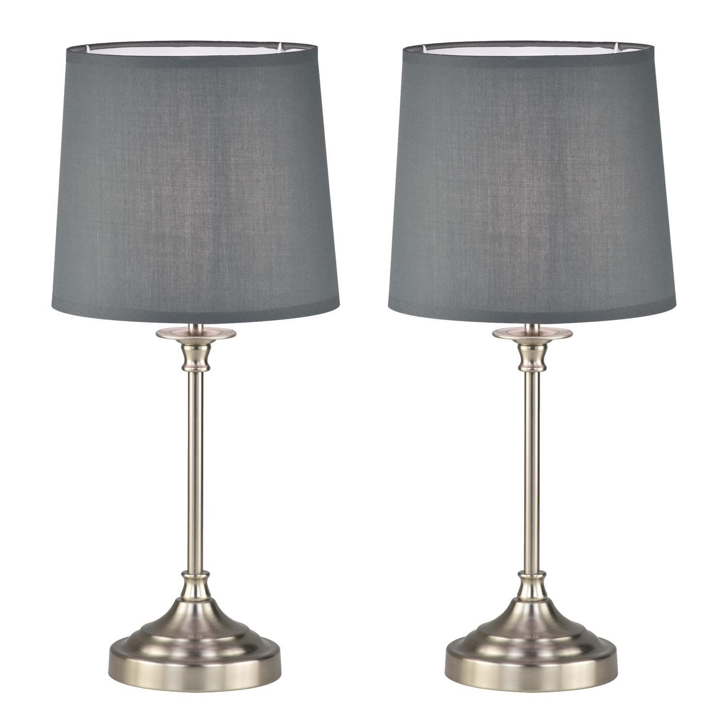 Set of 2 Brushed Nickel 47cm Table Lamp Bedside Lights with Grey Shades