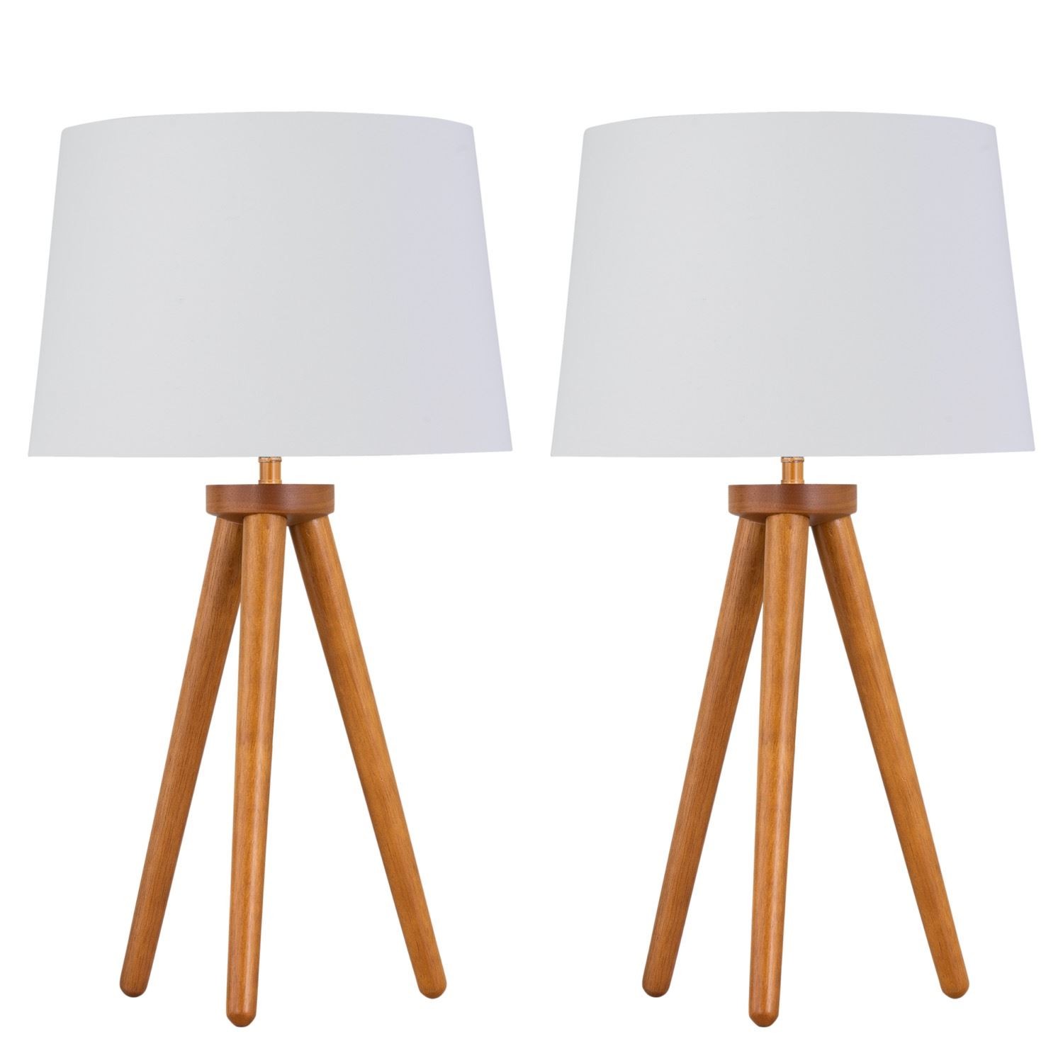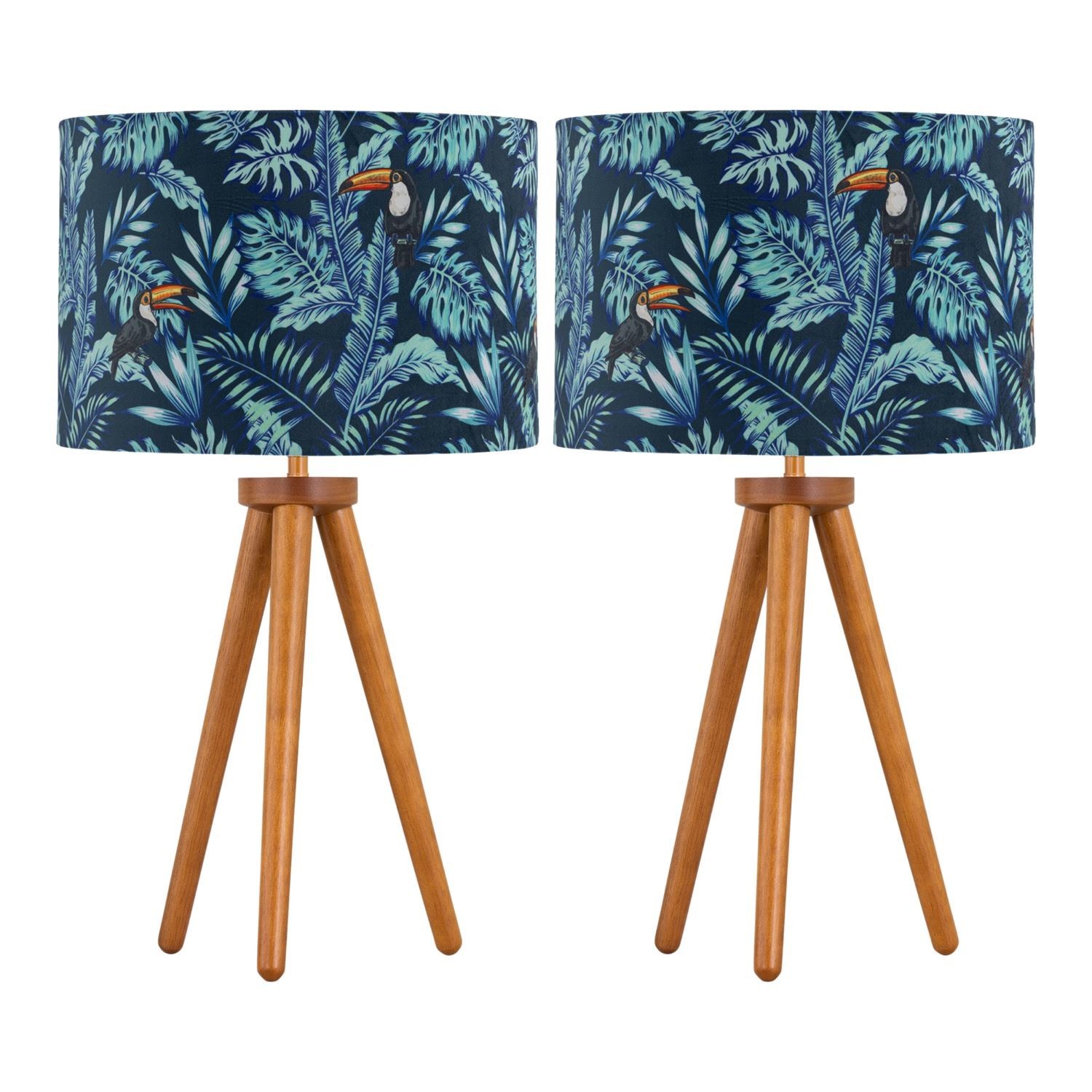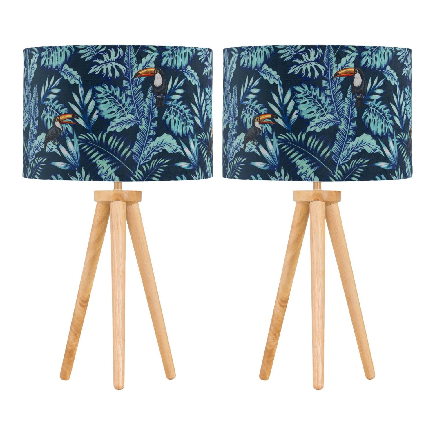 Set of 2 Modern Light Oak Table Lamp Bedside Lights Wood Tripod Toucan Shades