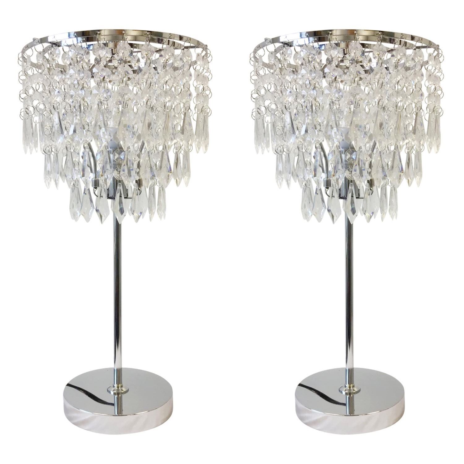 Set of 2 Chrome Table Lamp Bedside Lights With Acrylic Crystal Jewelled Shades