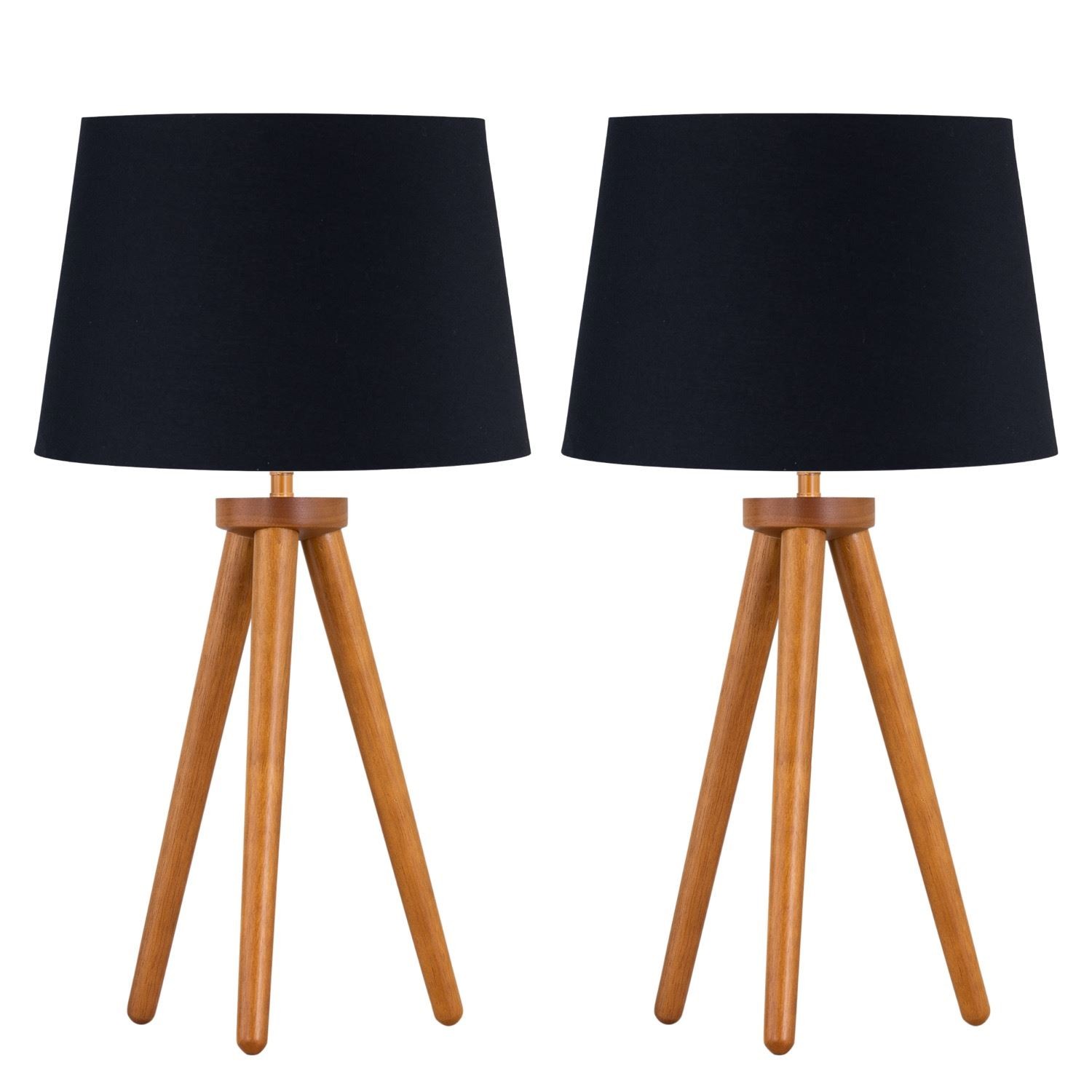 Set of 2 Modern Dark Oak Table Lamp Bedside Lights Wood Tripod Black Shades
