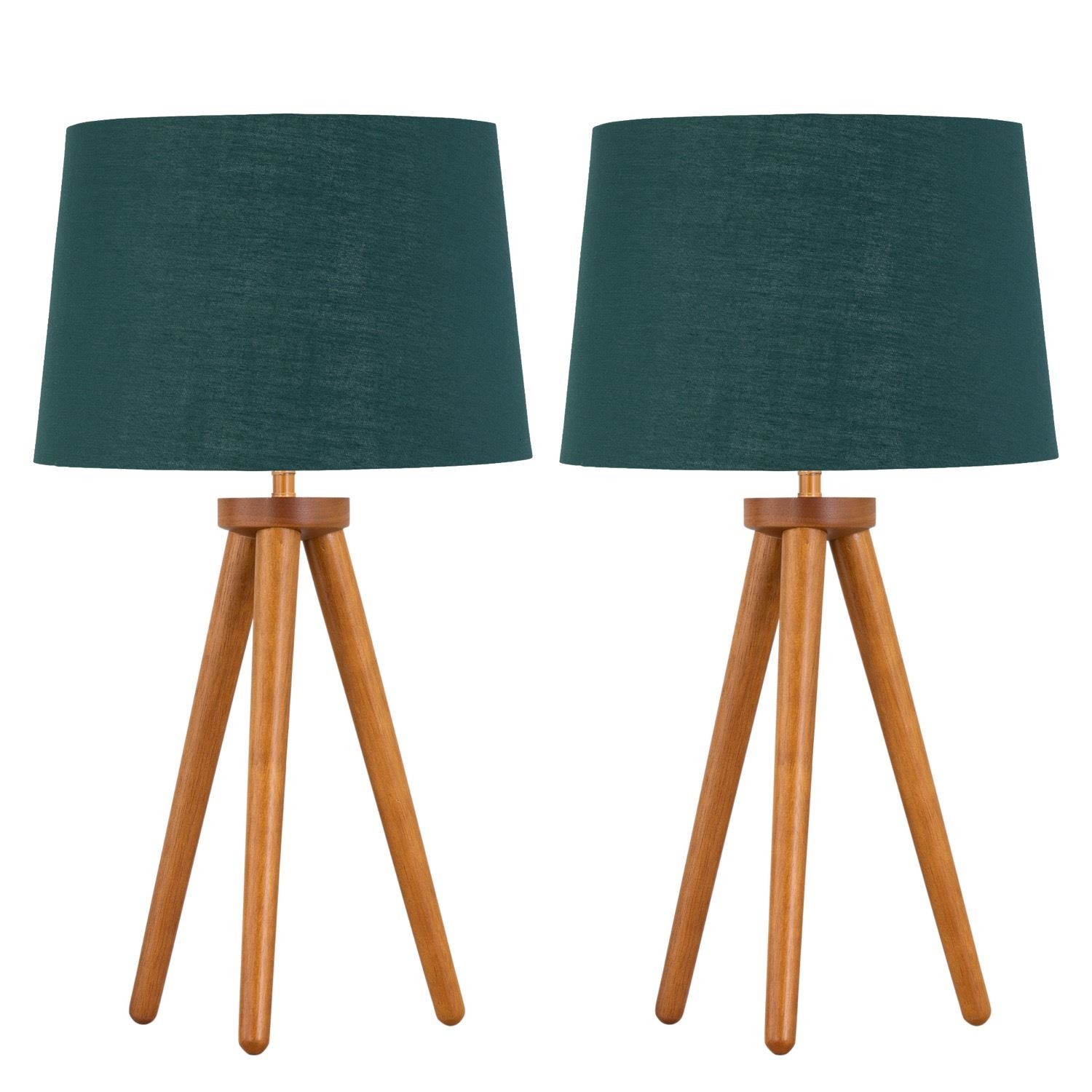 Set of 2 Modern Dark Oak Table Lamp Bedside Lights Wood Tripod Dark Green Shades