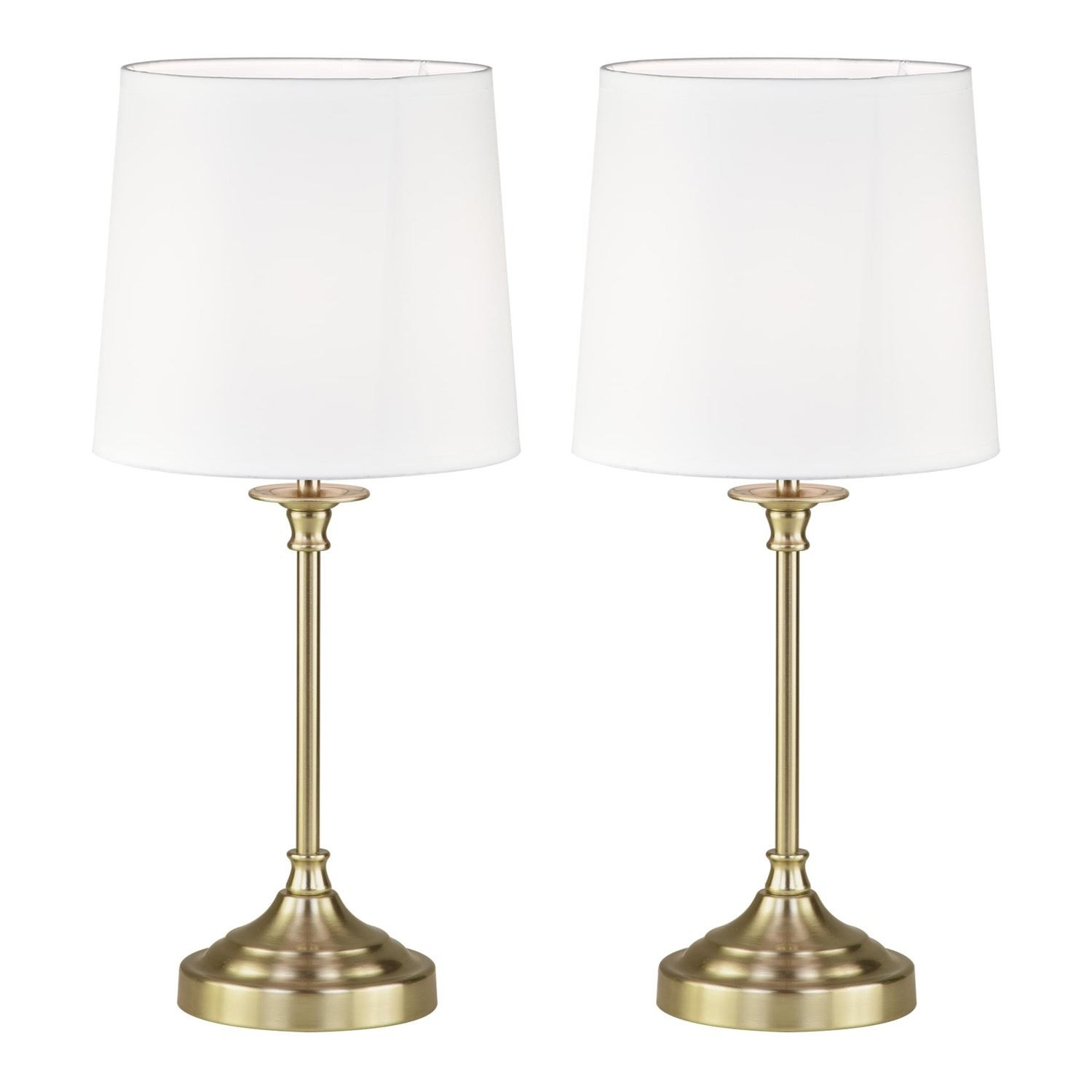 Set of 2 Antique Brass 47cm Table Lamp Bedside Lights with Off White Shades