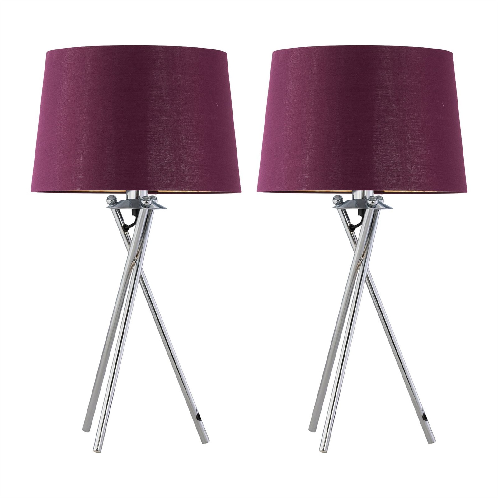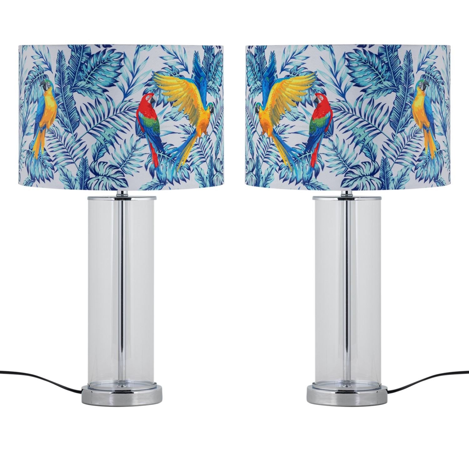 Set of 2 Modern Chrome & Glass Table Lamp Bedside Lights Parrot Velvet Shades