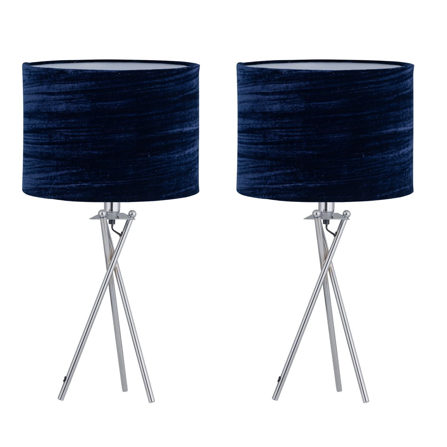 Set of 2 Tripod 52cm Table Lamp Bedside Lights Navy Blue Crushed Velvet Shades