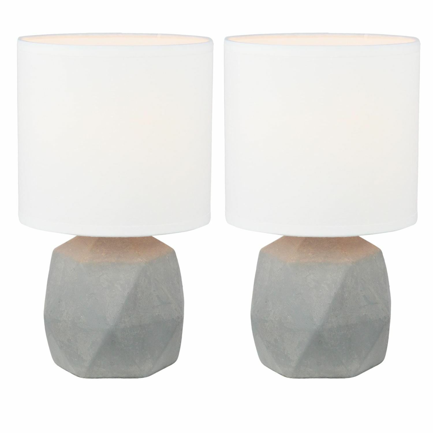 Set of 2 Modern 27cm Concrete Table Lamp Bedside Lights with White Shades