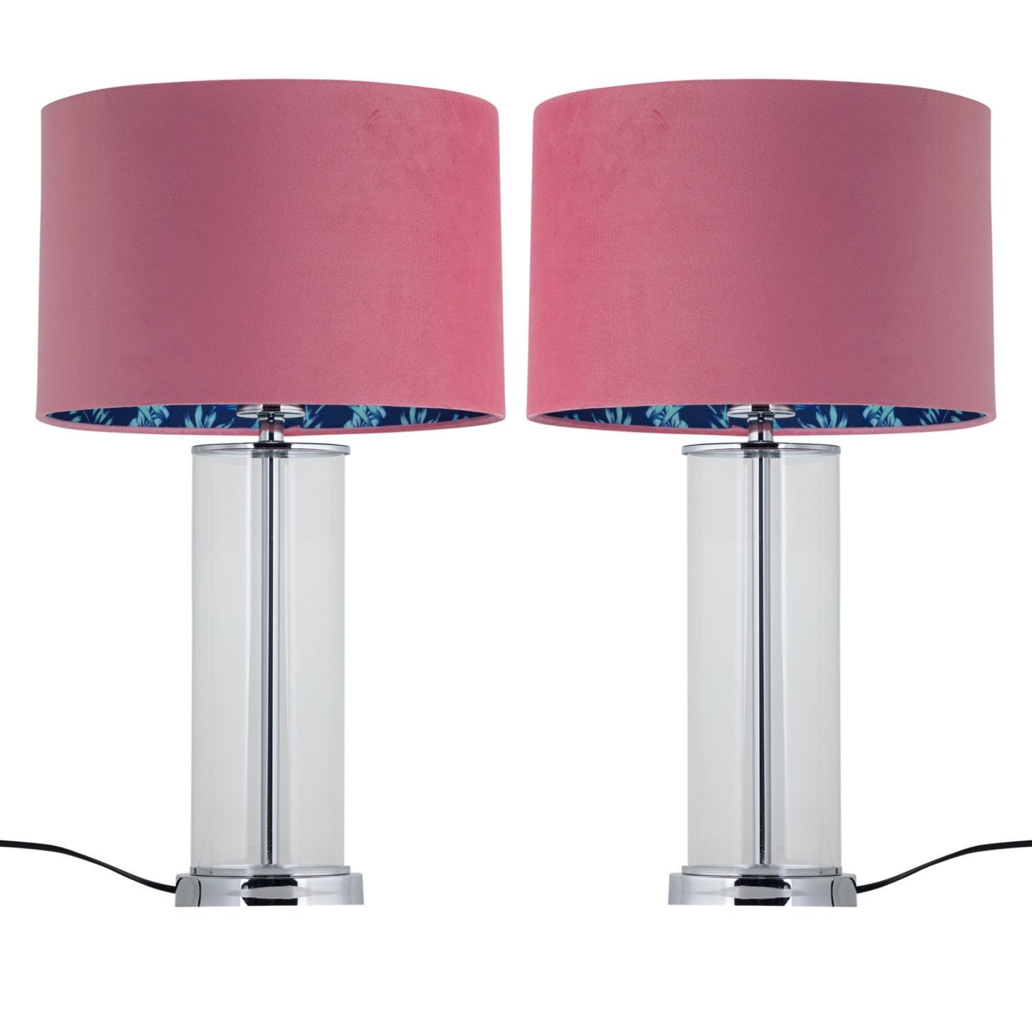Set of 2 Modern Chrome & Glass Table Lamp Bedside Lights Pink Flamingo Shades