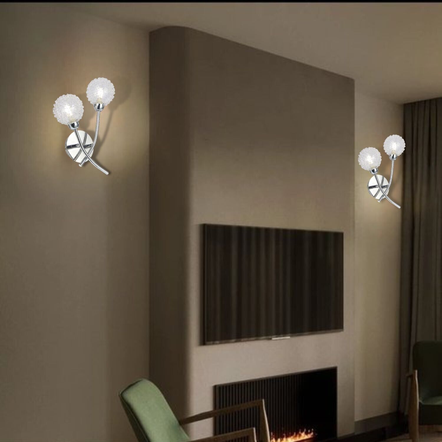 2x LED Twin Wall Light Modern Chrome Glass Shades G9 2 Way Bedside Round Lamp