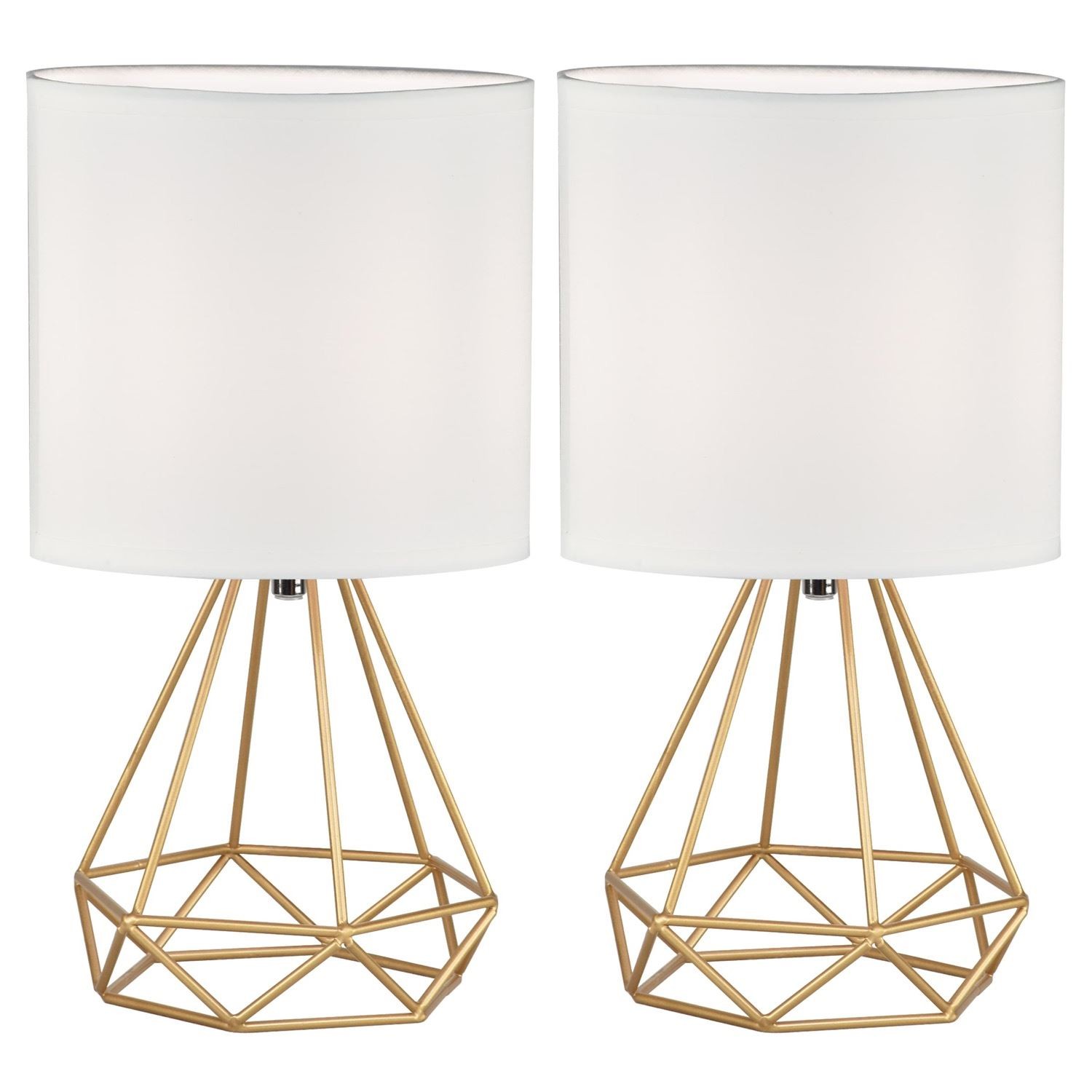 Set of 2 Geometric 32cm Table Lamp Bedside Lights Gold with White Shades