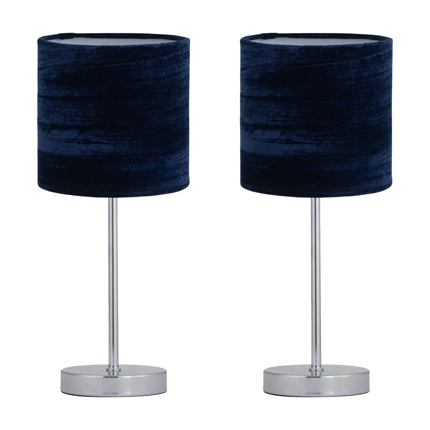 Set of 2 Chrome 35cm Table Lamp Bedside Lights Navy Blue Crushed Velvet Shades