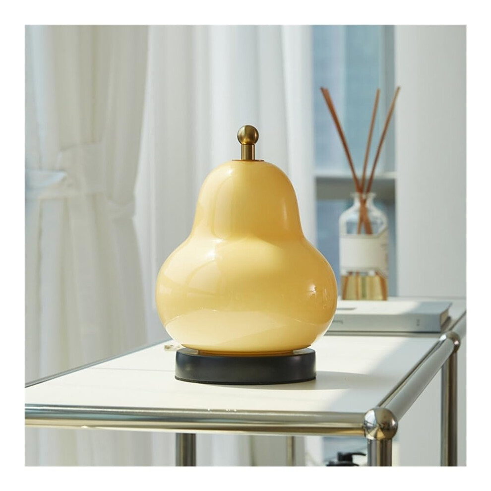 Touch Bedside Table Lamp Modern Small Desk Lamp, Pear Shape Glass Shade, Eye Protection, Nordic Creamy Yellow