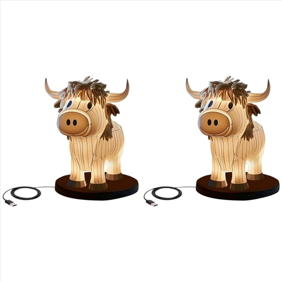 2X Cow Table Lamp Farmhouse Cow Night Light, Cow Bedside Lamp USB Small Nightstand Lamp