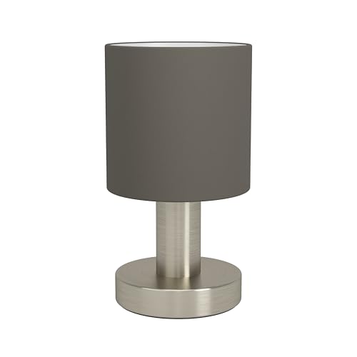 Eglo Bedside Table lamp Monetto, Small Decorative Light Fixture, Elegant Living Room and Bedroom Lighting, Silver Metal with Fabric lampshade in Cappuccino, E14 Socket, H 18 cm