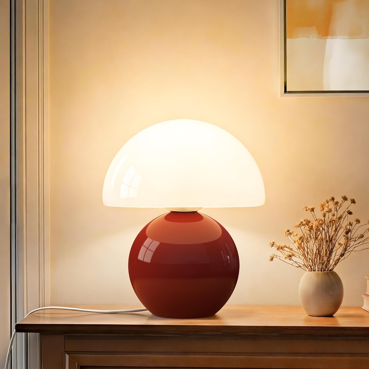 Orange Mushroom Lamp, Mid Century Modern Table Lamp for Bedroom, Minimalist Mushroom Decor Bedside Small Lamps, 2700K(Bulb Included, Plug Powered)