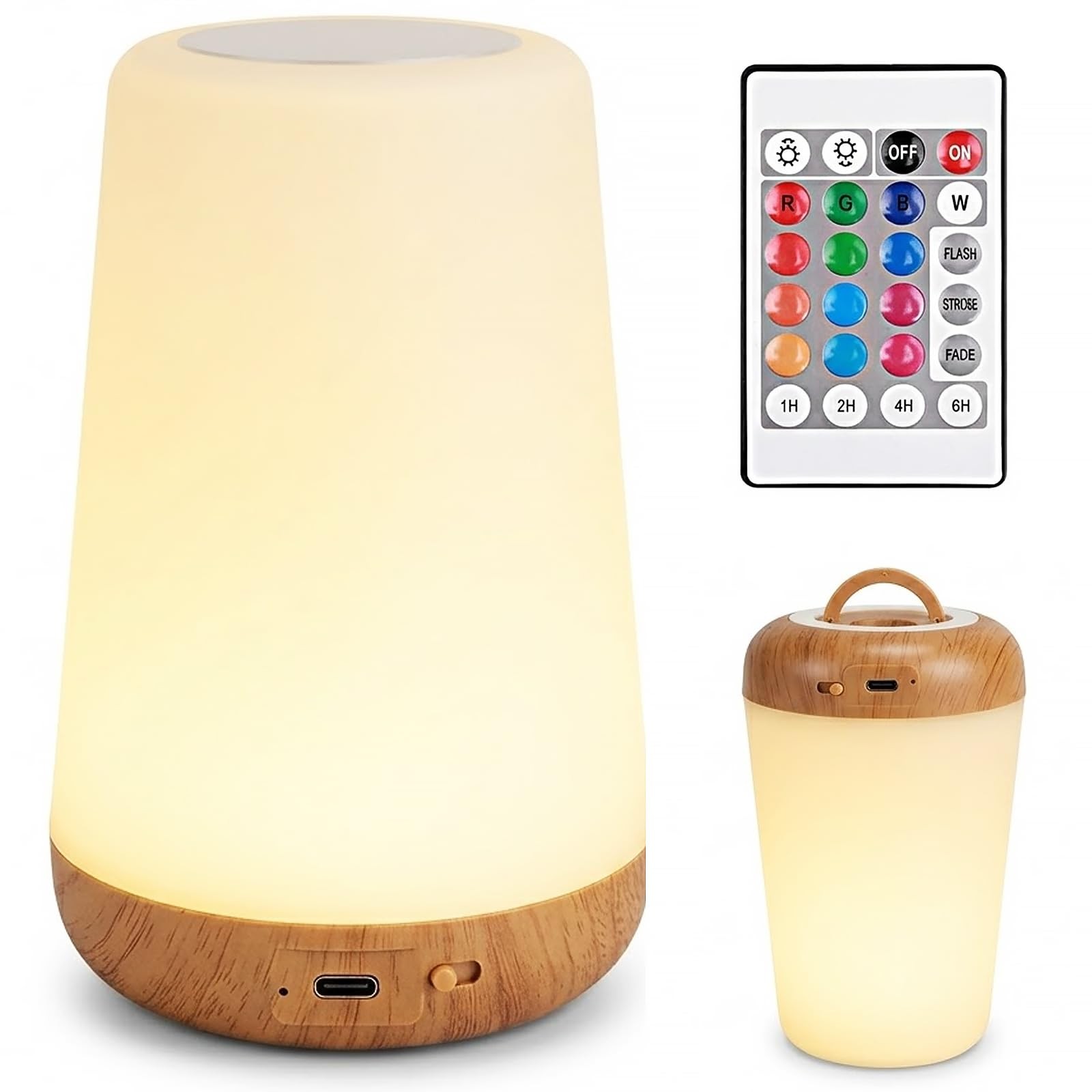 LED Bedside Night Light – Touch & Remote Control Small Cordless Table Lamp, U