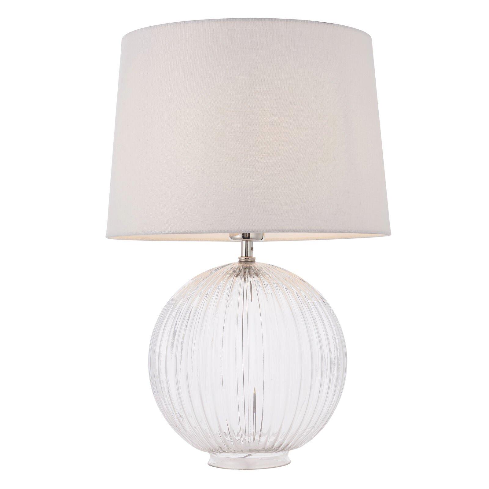 Table Lamp Clear Ribbed Glass & Vintage White Linen 40W E27 Bedside Light